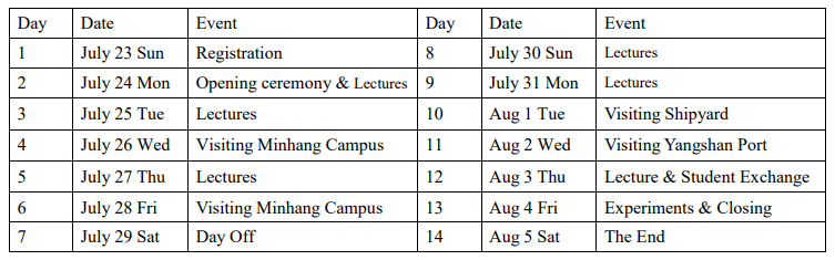 This International Summer School aims to facilitate cross-cultural communication and foster mutual learning among domestic and international students through a diverse range of activities, including lectures, seminars, workshops, corporate training sessions, cultural showcases, as well as poster exhibitions. Please refer to Table 1 for further details. The summer school shall provide meals and accommodation upon arrival in Shanghai, while the expenses for transportation shall be borne by oneself.