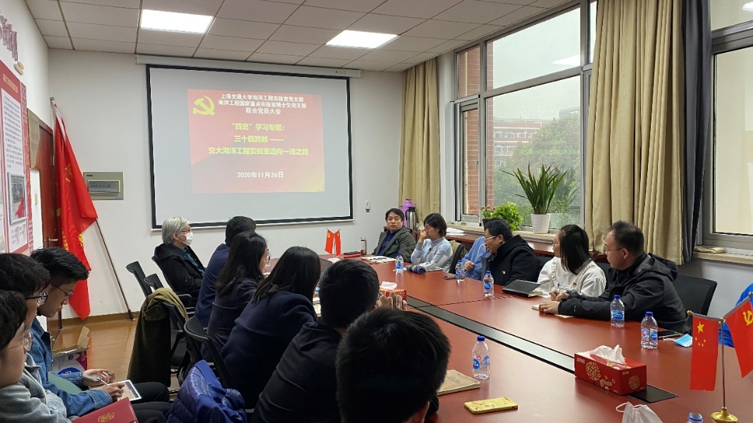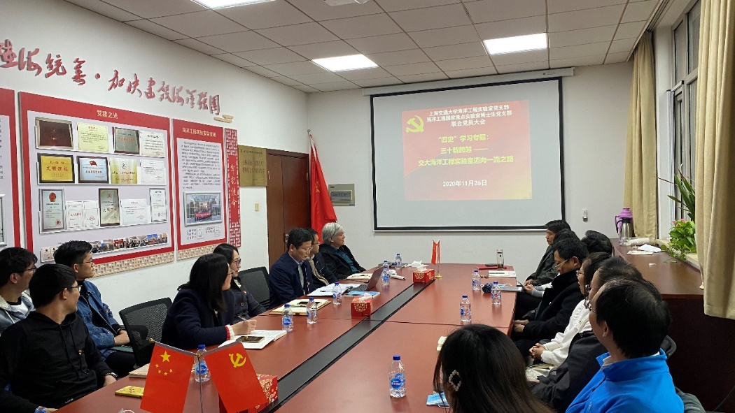 11月26日,海洋工程实验室教工党支部联合海洋工程国家重点实验室博士生党支部,在全国“双带头人”肖龙飞工作室即海洋深水试验池党员之家,联合开展“三十载跨越——交大海洋工程实验室迈向一流之路”主题党日活动,以交大海洋工程国家重点实验室三十年发展史折射改革开放史。船建51风流 党委副书记王喜芳应邀列席活动。海洋工程实验室教工党支部和海洋工程国家重点实验室博士生党支部全体党员参加活动,活动由党支部书记肖龙飞主持。