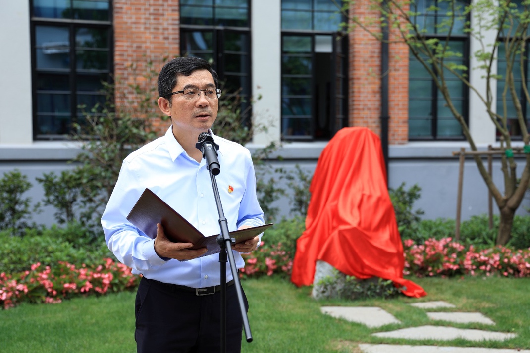 随后,进行了山茶社纪念碑揭幕仪式,顾锋、胡昊和周薇三位老师共同为山茶社纪念碑揭幕。