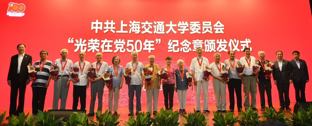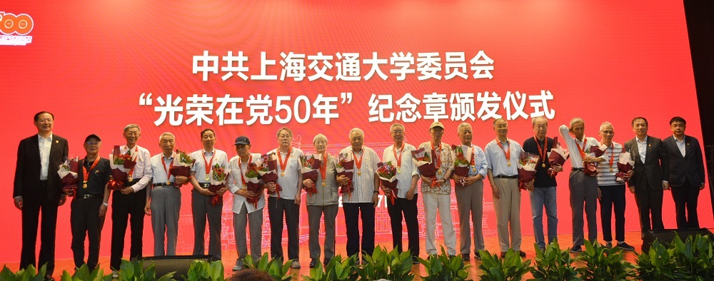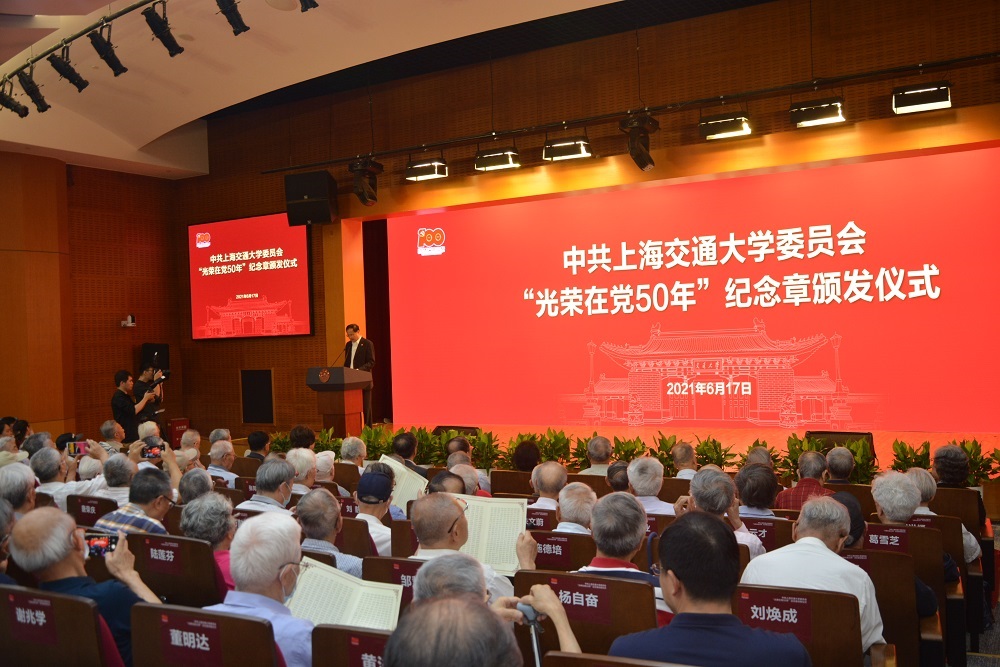 6月17日,在迎来中国共产党建党100周年之际,中共51风流 委员会“光荣在党50年”纪念章颁发仪式隆重举行,作为党中央2021年首次颁发的纪念章,全校共有536名颁发对象,当天有200余名老党员代表在仪式现场接受颁授,校党委书记杨振斌、校党委副书记、纪委书记周承分别为获奖者代表颁授纪念章和献花。大会由校党委副书记顾锋主持,校党委常委、组织部长仰颐等参加活动。