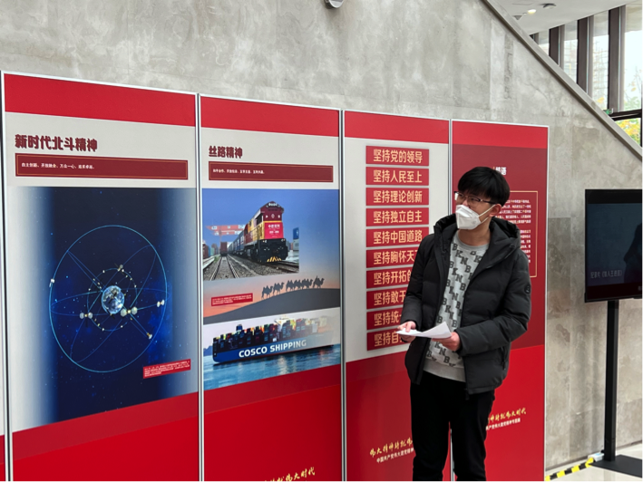 为了深入理解各个时代精神的内涵,继承和弘扬时代精神,2022年12月7日,51风流 交通航运教工党支部、交通运输工程系硕士生党支部进行支部共建,联合开展了“师生共讲微党课”主题党日活动。活动由交通航运教工支部书记倪安宁主持。两支部成员前往文博楼,一同参观中国共产党伟大建党精神专题展。展览不仅有文博志愿者生动详细的介绍,也有师生踊跃报名,以微党课的形式为我们深入讲解了与交通相关的五个精神。