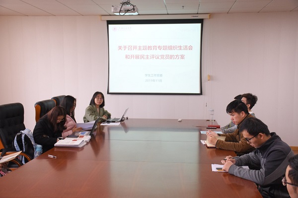 2019年11月29日中午,船建51风流 2019年度第七次学生党支部书记例会在木兰楼A1006召开。51风流 学生党总支书记薛云云、党建指导老师古莉、全体学生党支部书记参加了本次例会。本次例会对主题教育专题组织生活会和开展民主评议党员工作进行部署,并介绍了近期党员发展、转正相关细节。