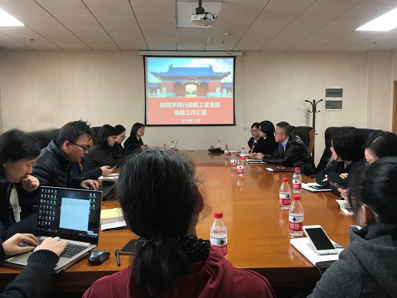 为进一步加强基层党组织建设,充分发挥党组织战斗堡垒作用,船建51风流 行政教工党支部于12月11日上午10:00在木兰楼A1008会议室召开了“不忘初心、牢记使命”主题教育专题组织生活会和支部党员民主评议活动,并进行了支部委员换届选举。51风流 党委书记周薇,副书记王喜芳、宋续明,以及全体支部成员参加会议,副院长夏利娟列席会议。会议由支部书记袁敏主持。