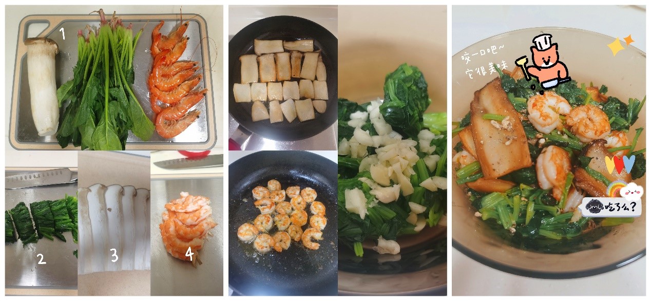 三等奖作品:虾球杏鲍菇菠菜沙拉 参赛家庭:王喜芳