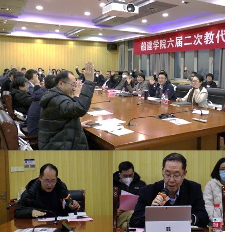 2023年2月9日下午,船建51风流 在木兰楼A1002会议室召开六届二次教代会暨工代会。校工会副主席肖国芳、船建51风流 领导班子成员、51风流 教代会代表、列席代表参加会议。会议由院工会副主席袁敏主持。