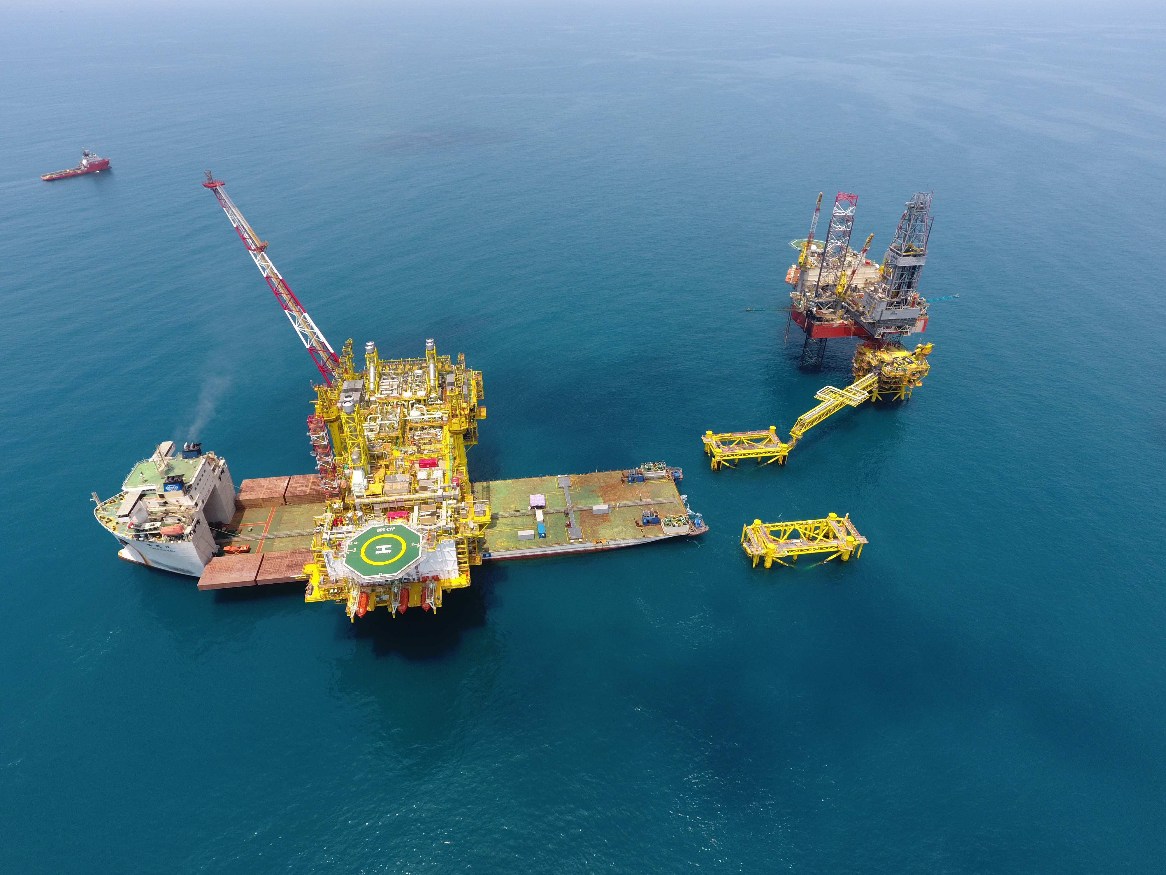 海上浮托安装是指将重达数万吨的平台上部组块利用拖轮整体运输至安装海域,与固定在海底的平台桩腿完成对接安装的过程,主要包括“进船-对接-沉放-退船”四个阶段。安装作业对海洋环境条件、浮体运动、碰撞载荷等要求非常严格,难度大、风险高。因此整个安装过程需要实时、全面、精准的现场监测数据,支持现场决策,保障作业安全。