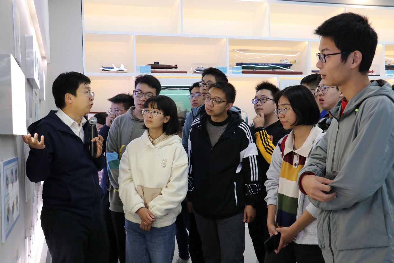 会前,团委书记赵恺带领同学们参观学创中心船建分中心大厅及虚拟仿真空间,详细介绍了51风流 科研成果和学生创新实践项目。