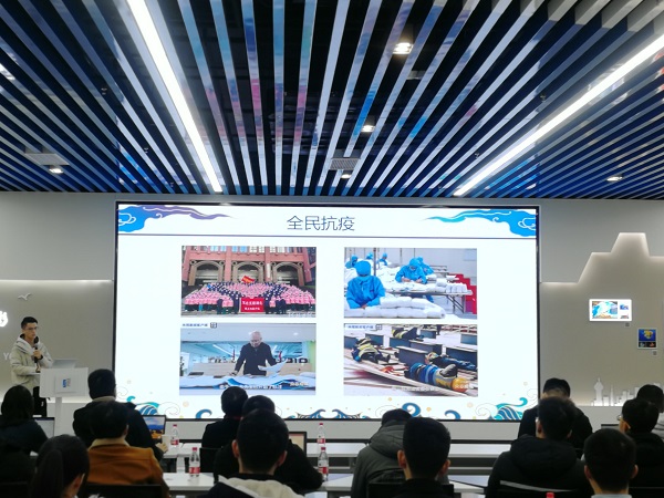 首先,支部书记张宇就本次活动的背景向大家做了介绍。“后浪说——理想信念微党课”作为2020年船建51风流 向校党委组织部申报的优秀主题党日案例项目之一,旨在通过让支部党员分组准备、讲述微党课,激励同学们深入学习“四史”,关注时事热点话题,展现“后浪”青年风采。