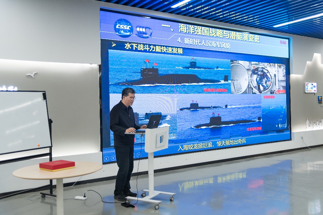 建设海洋强国,是中国特色社会主义事业的重要组成部分。习近平同志在党的十九大报告中指出:“坚持陆海统筹,加快建设海洋强国。”潜艇是能够在水下运行的舰艇,是公认的战略性武器,是大国重器和海上核盾牌。张锦岚老师从国家海洋强国战略的高度说起,为大家详细介绍了潜艇发展史上的五个里程碑及其带来的技术和革新,从不同的方面和角度阐释了潜艇的发展史。他通过包括二战期间的“狼群技术”、马里亚纳海战和马岛战争等在内的一系列实例,生动地说明了核潜艇在国际形势下的作用。