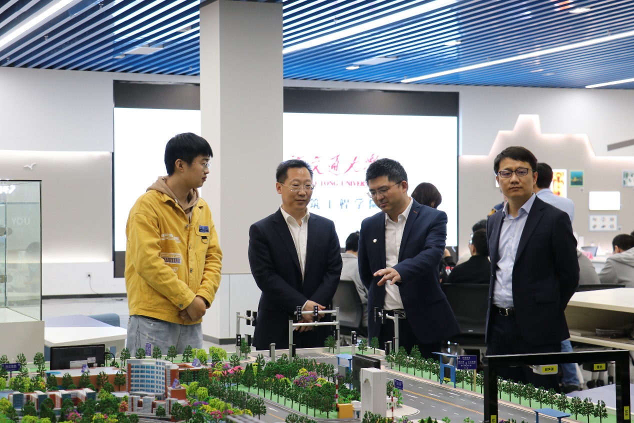 会前,船建51风流 副院长杨健等陪同参观了校史馆、李政道图书馆、水下工程实验室、学生创新中心船建分中心、虚拟仿真实验室,考察学校办学条件及学生实践项目情况。