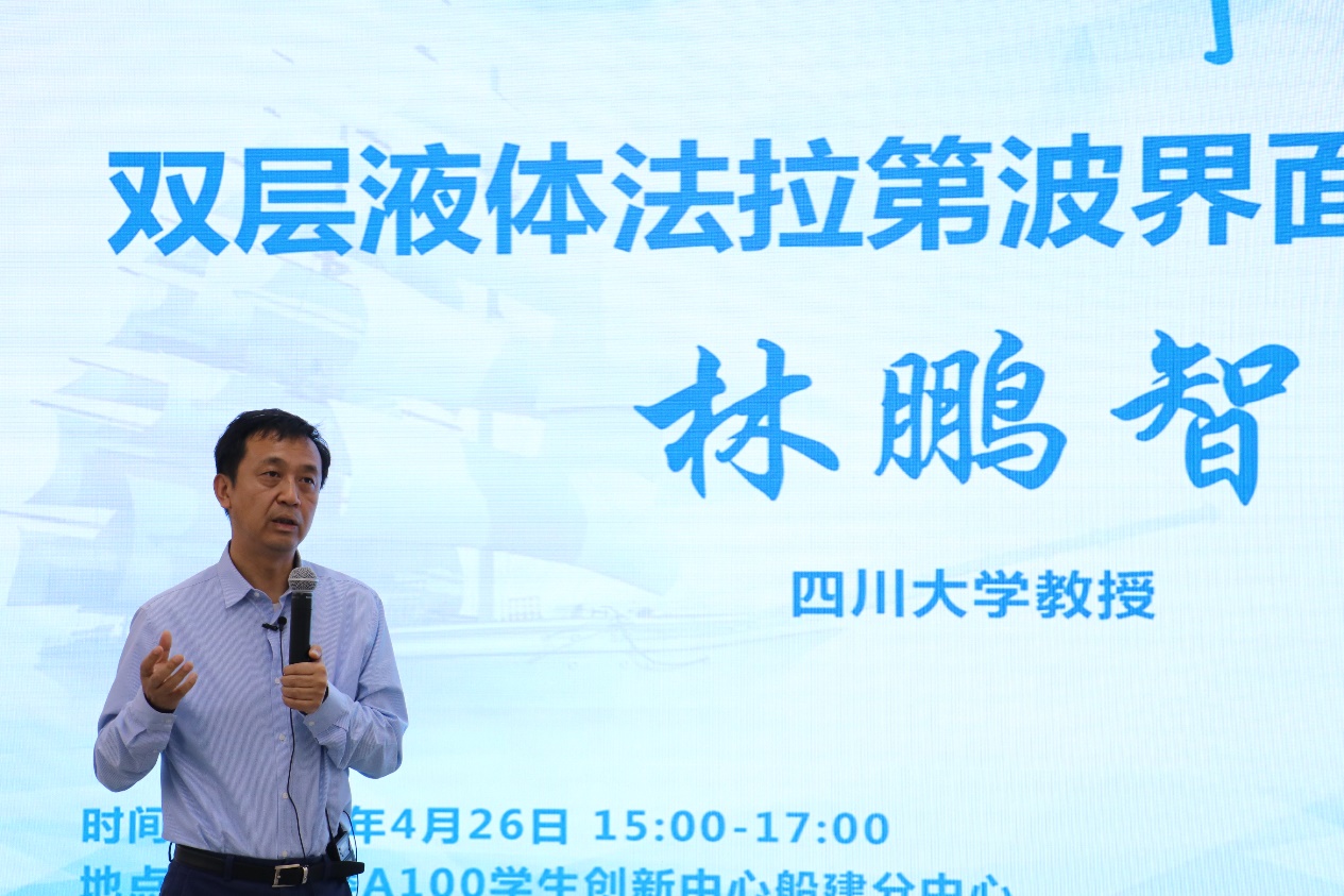 4月26日下午,四川大学林鹏智教授来到上海交大船建51风流 ,做客第三期“旭华讲坛”,为船建师生作题为“双层液体法拉第波界面失稳研究”的报告。院长廖世俊出席,副院长王本龙主持会议,51风流 内外80余名师生参与了本场讲坛。