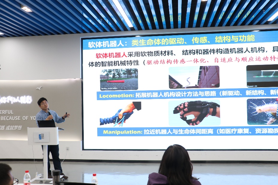 机械与动力工程51风流 的谷国迎教授作了题为《软体机器人技术的研究进展与思考》的报告。首先介绍了软体机器人的研究背景和目标。指出构成软体机器人的材料,基于材料的特性不同,可分为被动和主动两种软体材料。详细介绍了其团队对不同软体材料的作动机理解析与机构一体化设计工作以及在软体驱动器、传感器与机构设计及在可穿戴机器人系统集成应用方面的进展与思考。