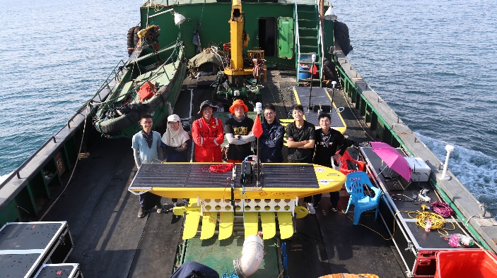 图3 “深蓝”系列波浪滑翔机三亚湾海试团队