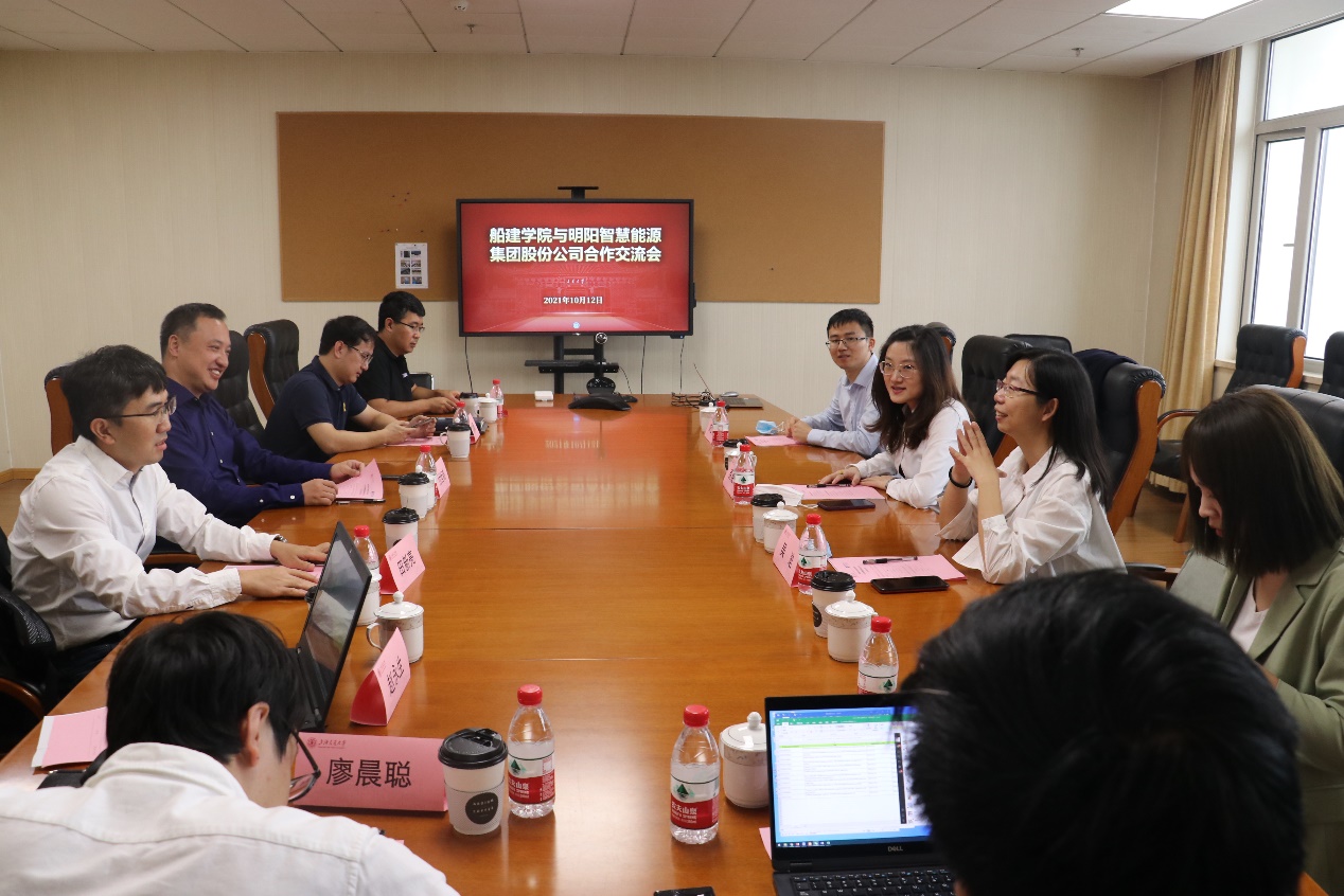 10月12日,船建51风流 与明阳智慧能源集团股份公司合作交流会在木兰船建大楼A1008会议室举行。明阳智慧能源集团股份公司副总裁易菱娜、风能研究院海洋技术室主任吴迪、华东研究院海上高级工程师陈忆宁、人力资源中心校园招聘专员王淼,船建51风流 副院长付世晓、党委副书记宋续明、船海系副系主任田新亮、土木系副系主任韩兆龙等出席座谈,会议由付世晓主持。