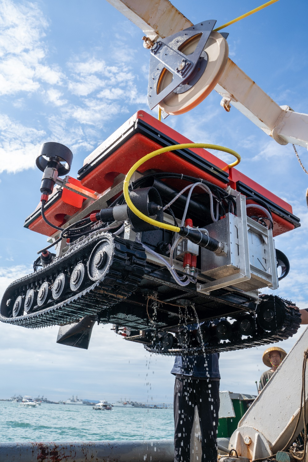 海洋工程团队主动对接我国海洋生态文明建设的重大战略需求,针对当前海洋塑料污染日益严重,且难以有效清理的难题,创新研发滨海水下废弃物清扫机器人。该水下机器人的研制成功,填补了我国海洋环境治理高端装备的空白,显著提升海洋环保装备的科技水平,为维护绿水青山发挥了重要作用。未来,团队还将针对海洋废弃物的实际分布特性,进一步完善相关技术与装备,为实现产业化示范应用奠定坚实基础。