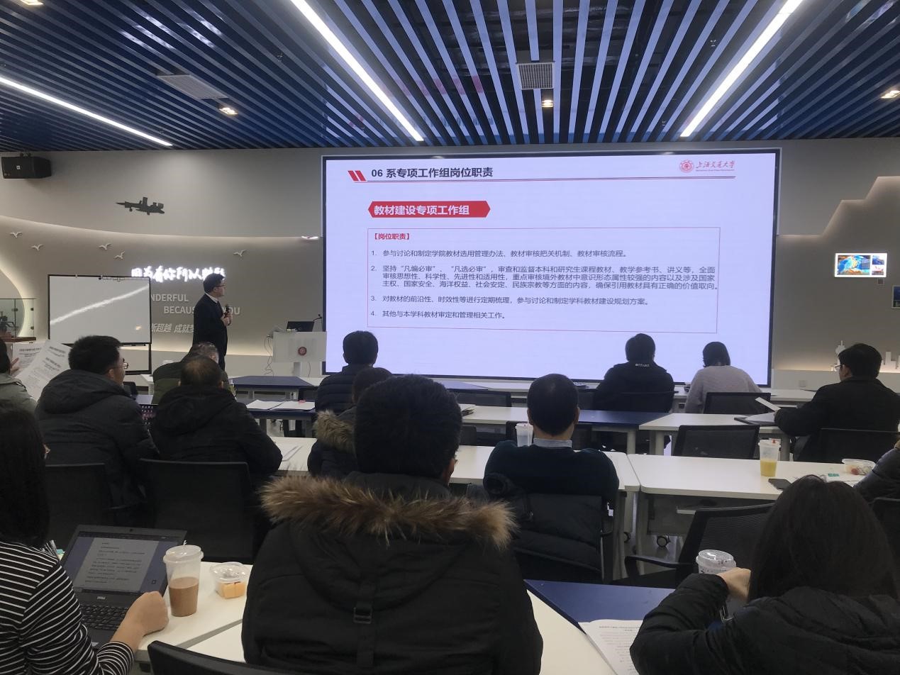 随后,杨健就51风流 选用教材审查工作机制和近期审查工作安排进行了介绍。为保证教材选用质量,确保优质教材进入课堂,51风流 将对选用教材进行全面排查,严格落实“教师自查、学科审查、51风流 复查”三级审核机制,坚持“凡选必审”、“凡编必审”,对选用境内教材、境外教材、自编讲义等进行思想性、科学性、先进性、适用性和时效性等全面审核,进一步规范教材选用与管理工作。