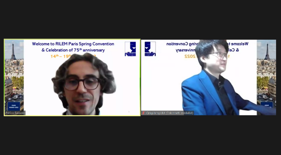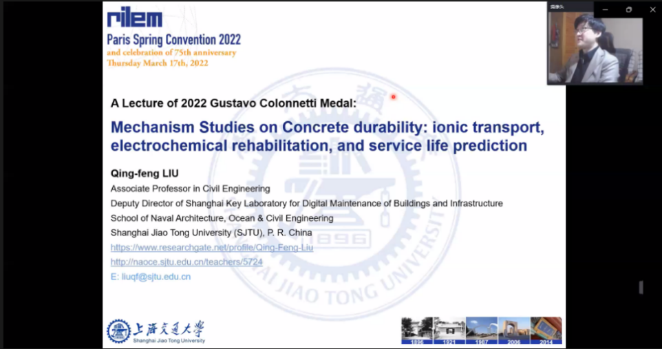 在会间,刘清风远程接受了RILEM学会·技术发展委员会主席的颁奖,随后以大会主旨报告的形式在线发表了题为“Mechanism Studies on Concrete Durability: Ionic Transport, Electrochemical Rehabilitation, and Service Life Prediction”的获奖演说,向与会专家和国际同行们系统总结了自己近年来的研究成果,取得了热烈反响。