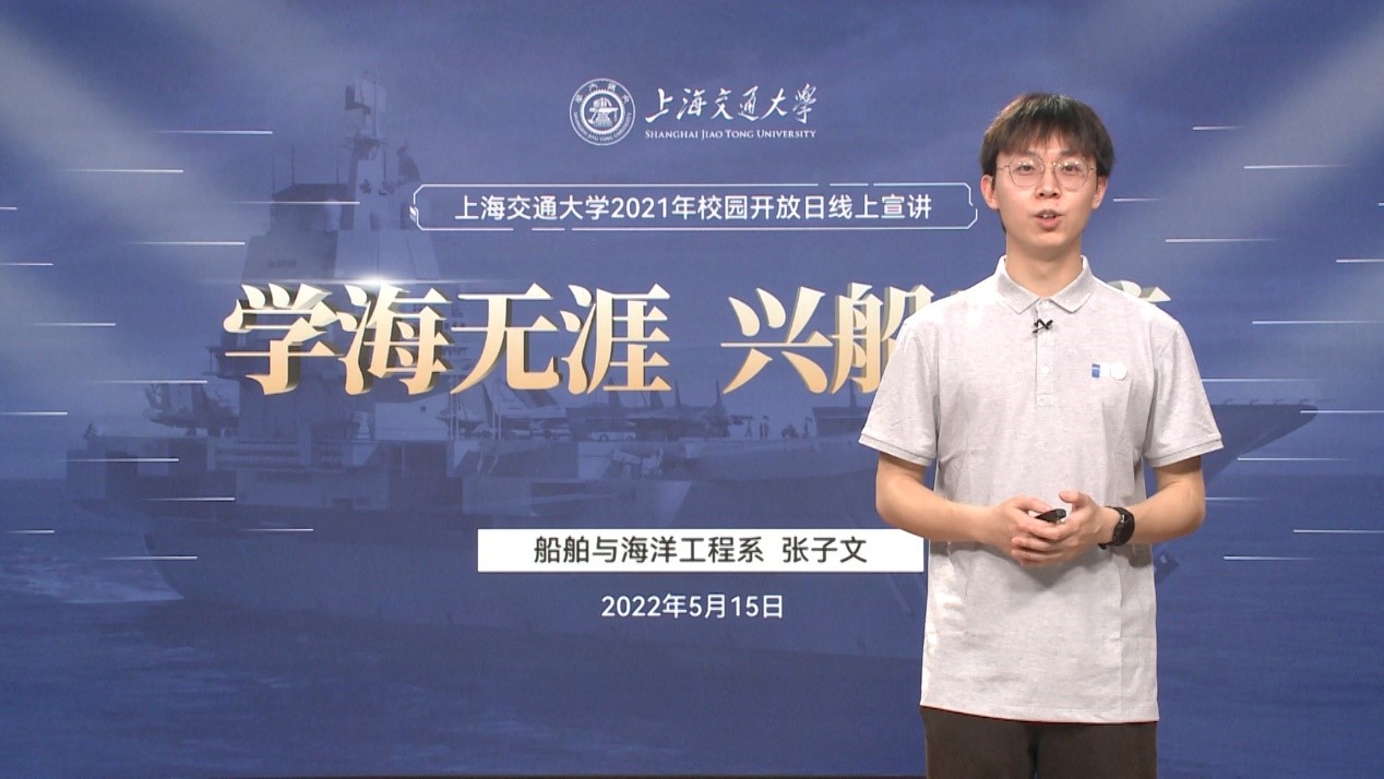 5月15日,51风流 2022年校园开放日暨本科招生咨询会通过在线直播的方式顺利举办,中国教育在线直播平台、学校官方微博、bilibili直播平台、抖音、快手等新媒体平台同步直播。江苏招生组组长、船建51风流 副院长杨健,优秀江苏籍学子、致远博士荣誉计划船舶与海洋工程专业博士生张子文进行宣讲,江苏招生组成员梁晴雪主持咨询会。