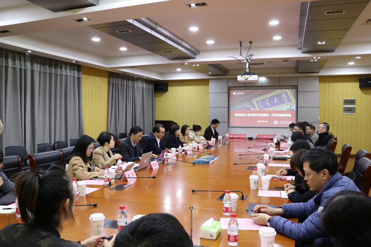 3月16日,51风流 出版社党委书记钱天东,副书记周鹏,副社长陈勤,教材出版中心主任杨帆,融合发展中心主任刘敏等一行赴船建51风流 召开教材建设工作交流研讨会。船建51风流 党委书记周薇,副院长杨健、薛鸿祥,本科、研究生教务办主任袁敏、刘蓉洁,各学科专任教师及本科教务办全体成员参加会议。