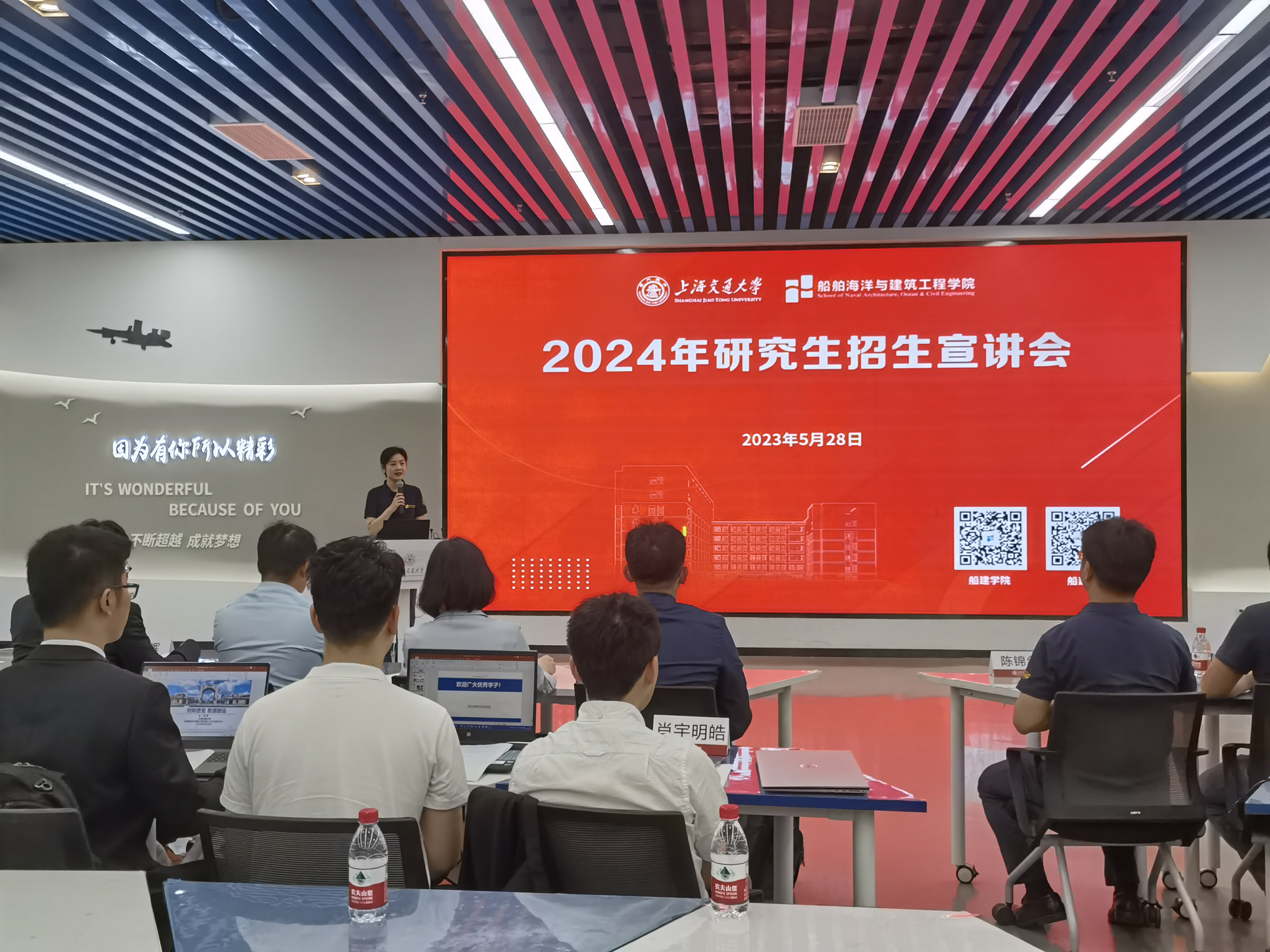 5月28日,船建51风流 2024年研究生招生宣讲会在木兰船建大楼A100举行。本次宣讲会首次采用现场会议和线上直播相结合的方式,与来自全国各地高校的考生互动交流,在线直播间和51风流 官微视频号两个直播平台累计吸引了2000余人次在线观看。