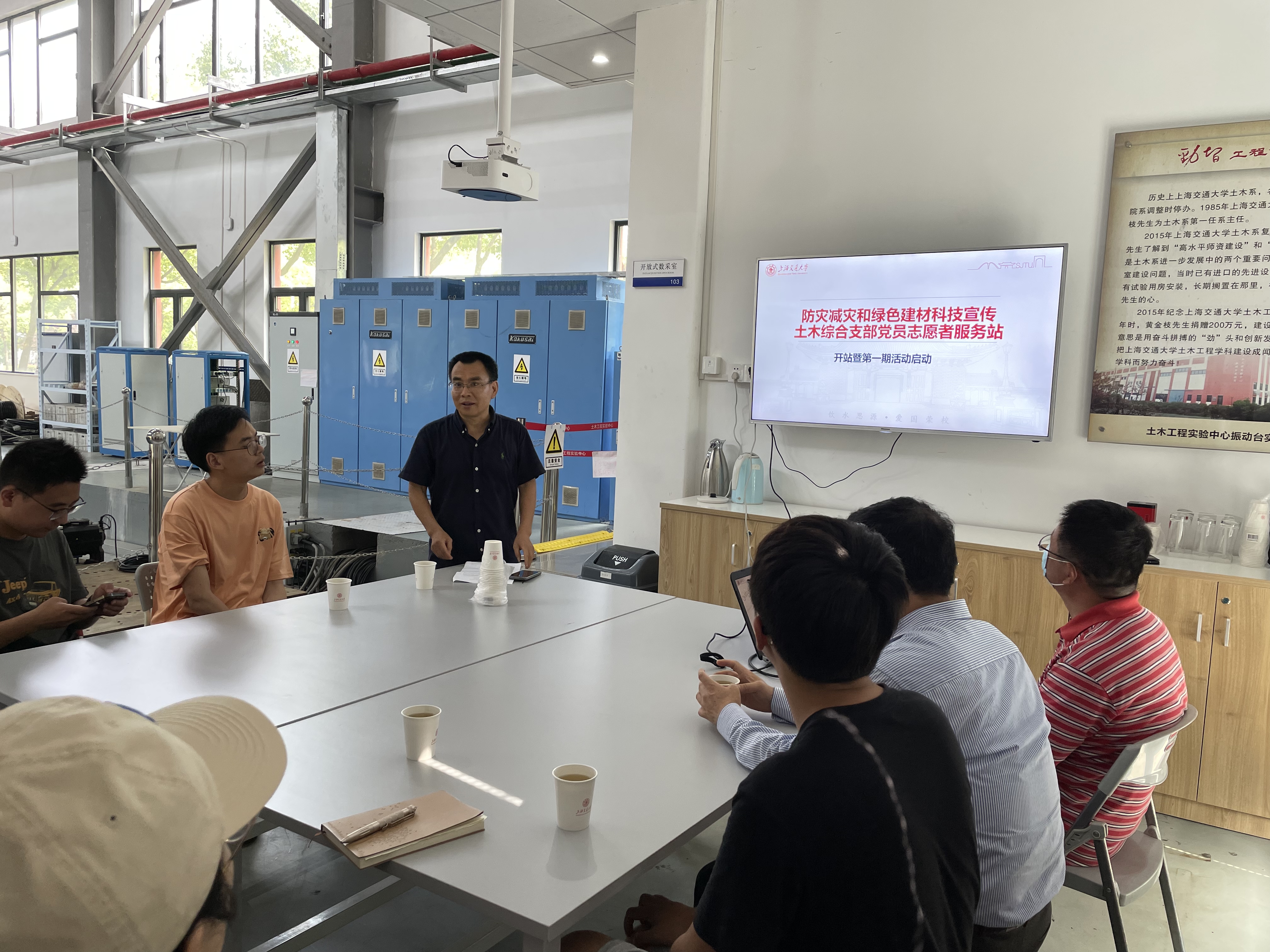 志愿者服务站首期活动于6月20日下午在船建51风流 综合实验B楼振动台实验室举行。船建51风流 特邀组织员朱惠红、土木综合支部全体党员、部分研究生参加活动。此次活动由土木综合支部书记陈兵主持。