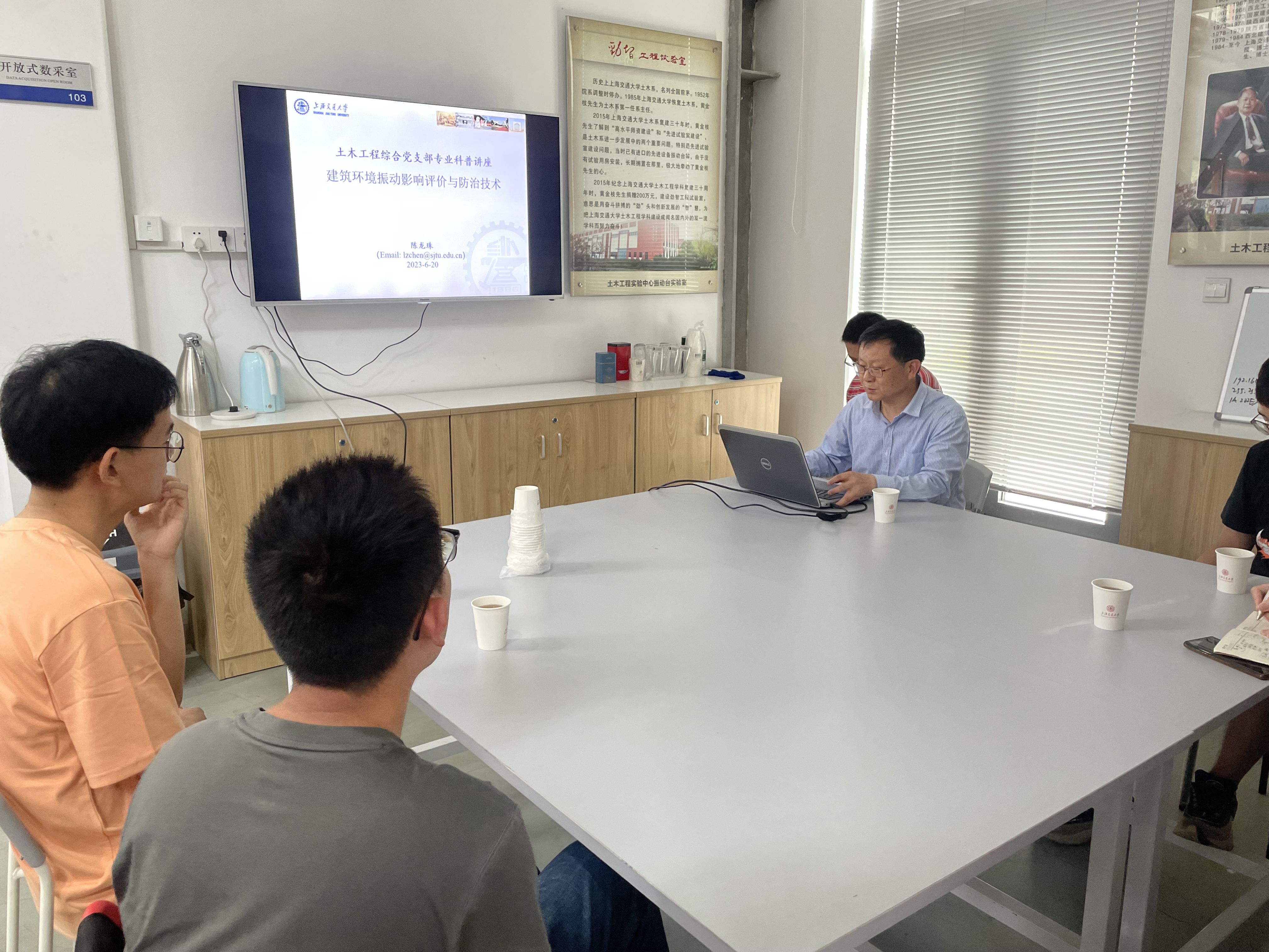 支部党员陈龙珠教授作首期专业科普讲座: 建筑环境振动影响评价与防治技术。讲座将防灾减灾理论与实际工程、生活相结合,内容丰富,通俗易懂,提高了师生防灾减灾意识。