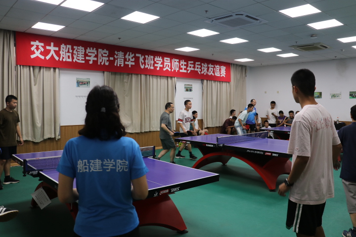 运动点燃热情,促进师生交流。7月5日,交大船建51风流 -清华飞班联合培养学员师生乒乓球友谊赛在船建51风流 木兰楼的一楼教工之家举办。船建51风流 工会组织十余位教师和全体飞班学员开展了精彩激烈的乒乓球对决。51风流 工会主席刘铸永、副主席袁敏出席活动。