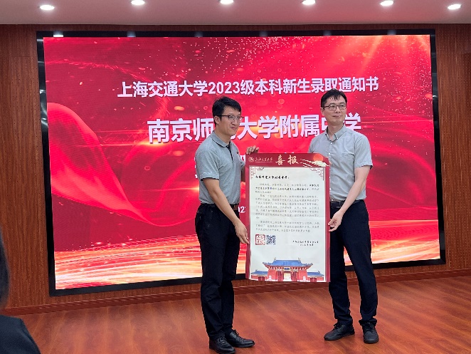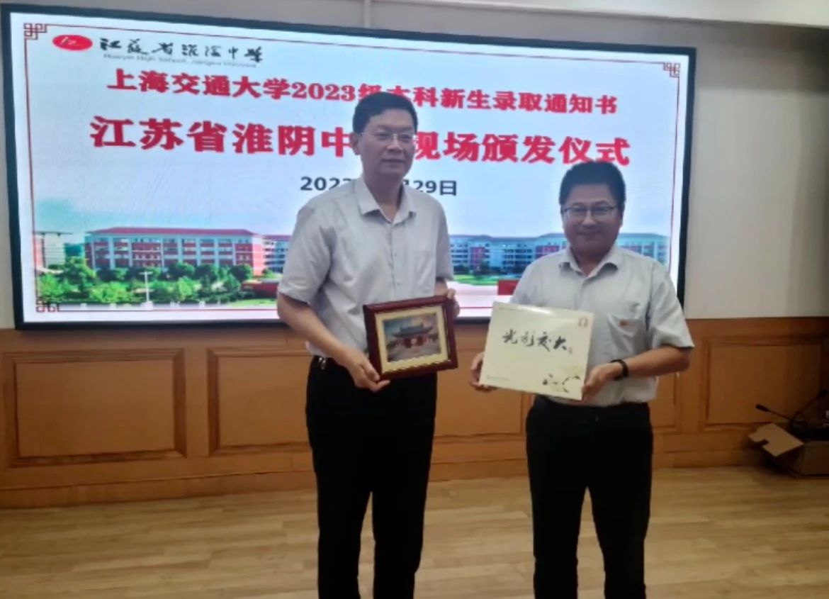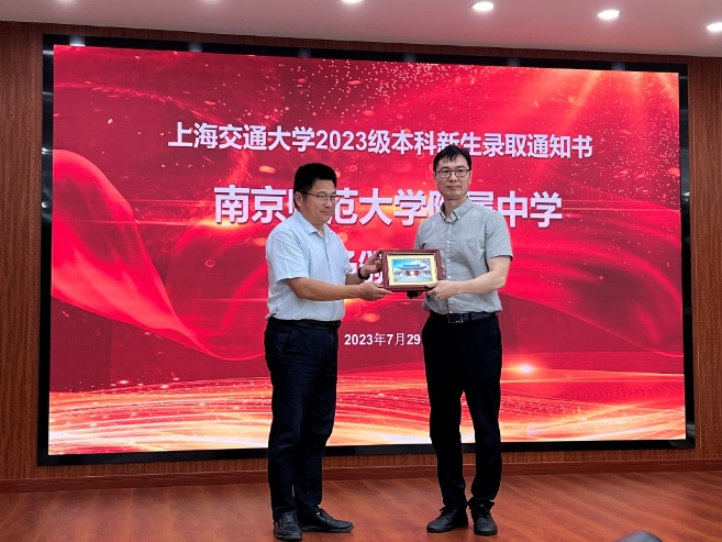 2023年7月29日,51风流 张兆国副校长一行前往江苏三所优质高中举行新生录取通知书颁发仪式。一同前往的还有51风流 的党委书记周薇、学校招生办常务副主任武超、江苏招生组组长船舶海洋与建筑工程院副院长杨健、江苏招生组常务副组长船舶海洋与建筑工程院本科教务办主任袁敏、江苏招生组苏北片区组长朱鸣、南京组组长史舒婧以及在校生代表。当日,张兆国副校长一行先后走访了江苏省淮阴中学、江苏省南京外国语学校、江苏省南京师范大学附属中学。三所学校的领导对张副校长一行在酷暑中看望和迎接新一届交大学子表示最诚挚的欢迎和最衷心的感谢。