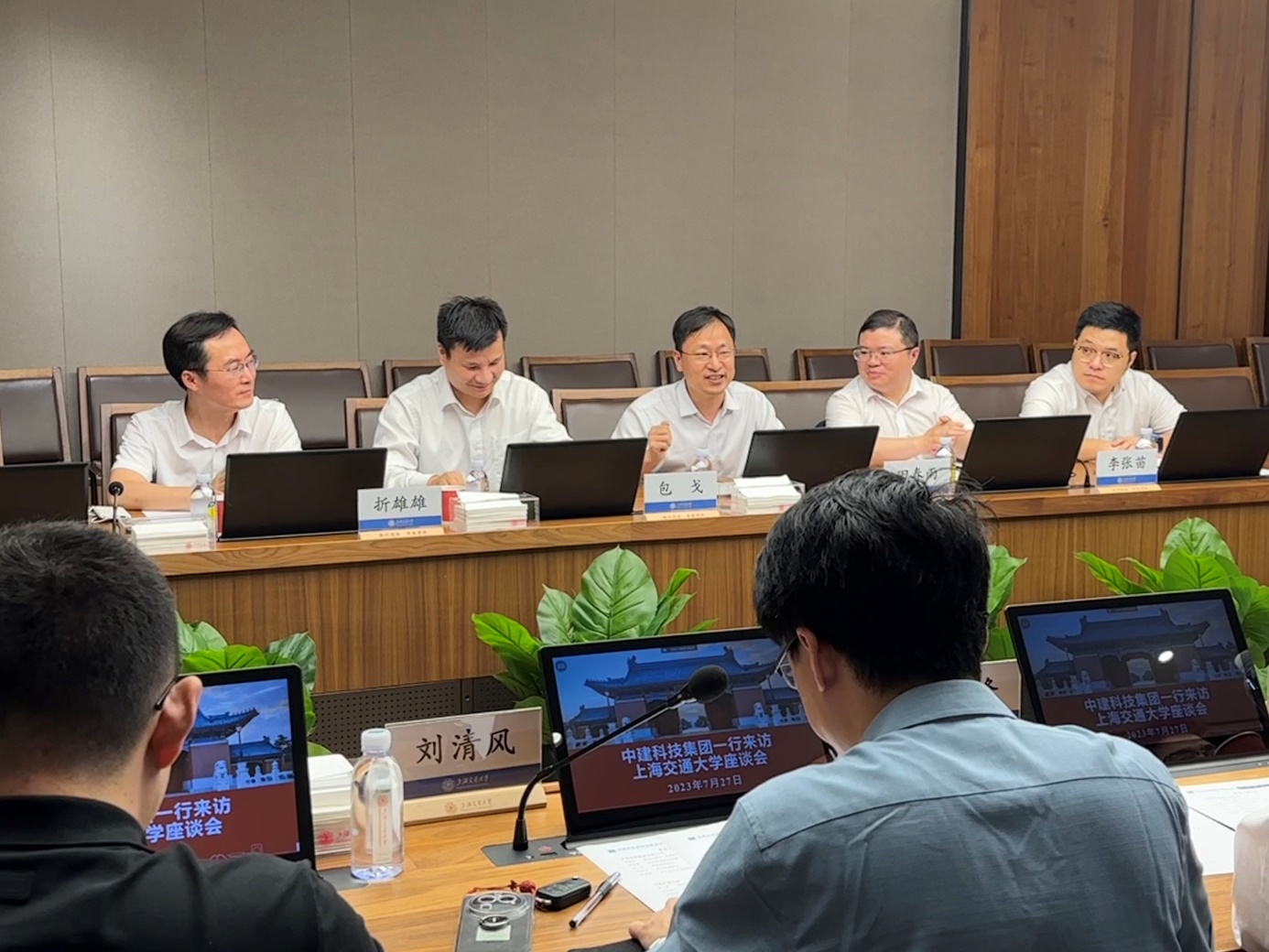 7月27日下午,中建科技集团一行到访船建51风流 开展交流。中建科技集团有限公司副总工程师、研究院院长田春雨、科技管理部总经理李张苗、副院长包戈、苏世龙、结构所所长折雄雄,51风流 船建51风流 副院长杨健、化学化工51风流 王仕峰教授、土木工程系副系主任高皖扬及土木工程系骨干教师代表参加会议。会议由杨健主持。