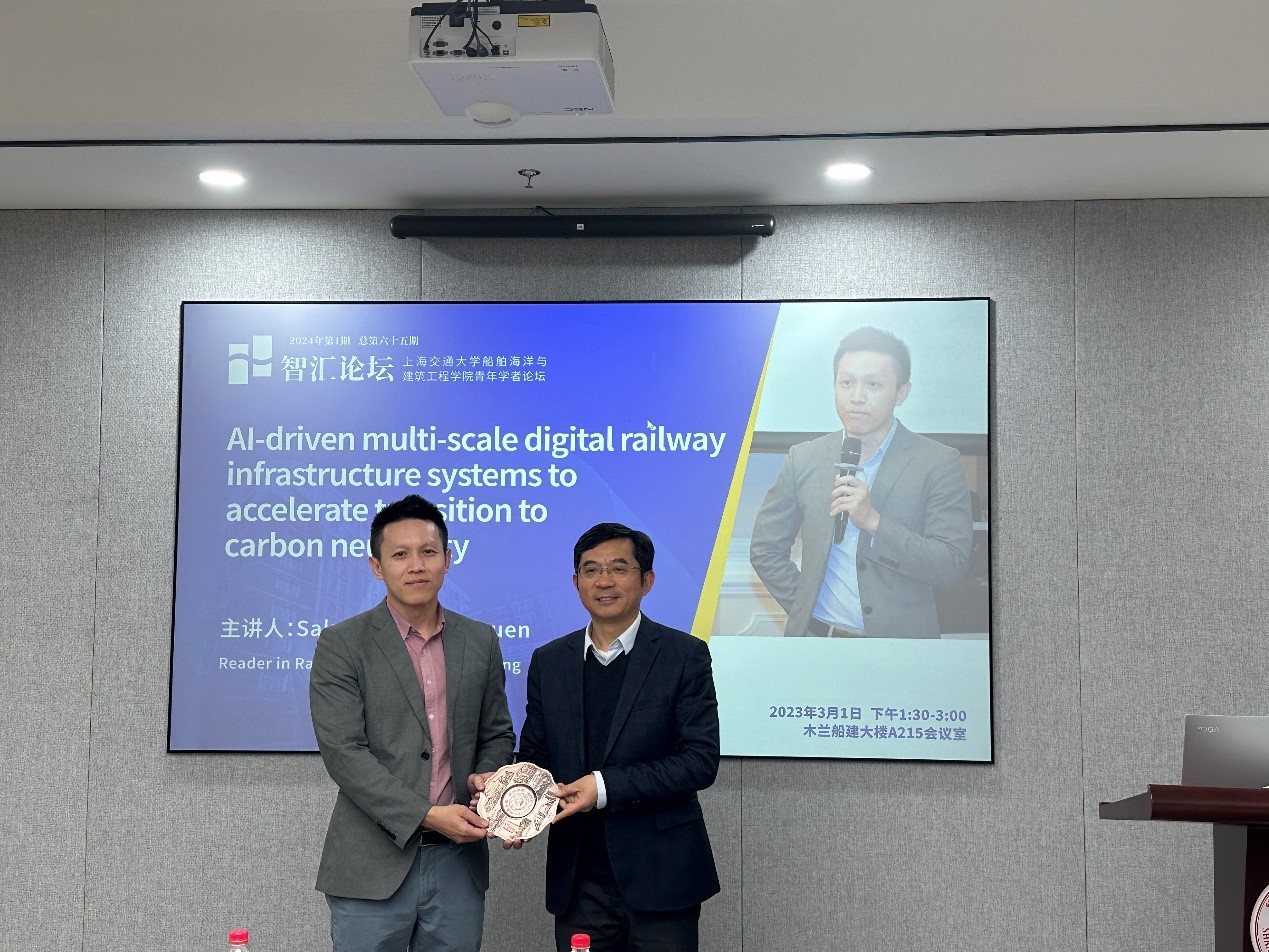 3月1日,伯明翰大学工程51风流 Sakdirat Kaewunruen教授应做客船建51风流 第六十五期“智汇论坛”,带来《人工智能驱动的多尺度数字铁路基础设施系统加速碳中和过渡》的报告。论坛由船建51风流 副院长杨健教授主持。