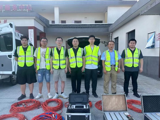 7月30日,项目组从上海出发,跨越1100公里,12小时后抵达现场并按计划方案开展检测工作。为科学、准确地查明堤坝内部涌水通道的所在位置,避免决堤情况的发生,此次应急检测工作主要采用了上海交大船建51风流