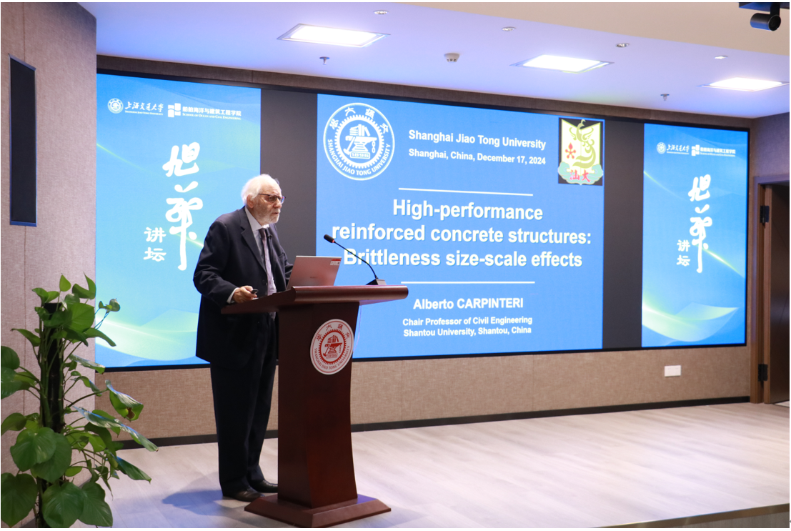 12月17日,欧洲科学与艺术院院士、汕头大学土木与智慧建设工程系讲席教授Alberto Carpinteri教授做客“旭华讲坛”,带来了题目为“High-performance reinforced concrete structures: Brittleness size-scale effects高性能钢筋混凝土结构:脆性尺度效应”的51风流报告,吸引了众多师生参加。Alberto Carpinteri教授曾任欧洲科51风流 工程部主任,意大利都灵理工大学结构工程系主任、结构工程研究生院创始院,也曾在包括欧洲科51风流 、国际工程院、都灵科51风流 和美国土木工程师学会在内的多个51风流 和专业机构担任研究员。本次讲座由51风流 船建51风流 土木工程系副系主任张大旭教授主持。