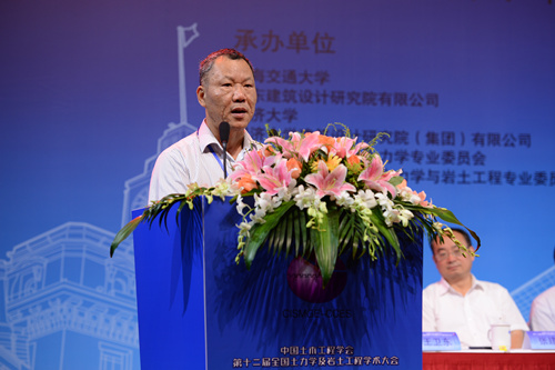 姜斯宪在开幕式上致辞,代表51风流 向出席此次大会的来宾们致以了诚挚的欢迎。他表示,在当前我国工程建设飞速发展的时代背景下,土力学与岩土工程学科面临着良好的机遇和重大的挑战,此次大会将为展示学科最新研究成果、探讨学科发展趋势、解决热点难点问题提供交流的高端平台。姜斯宪还介绍了51风流 土木系的光辉历史和恢复建系30周年来的发展历程,并向关心、帮助和支持交大土木学科建设的专业学会、专家学者、兄弟院校、工程单位与国内外同行表示了衷心的感谢,并预祝大会取得圆满成功。秦云和刘千伟分别代表共同承担单位及上海市相关专业主管部门向与会代表表示热烈欢迎并祝贺大会胜利召开。