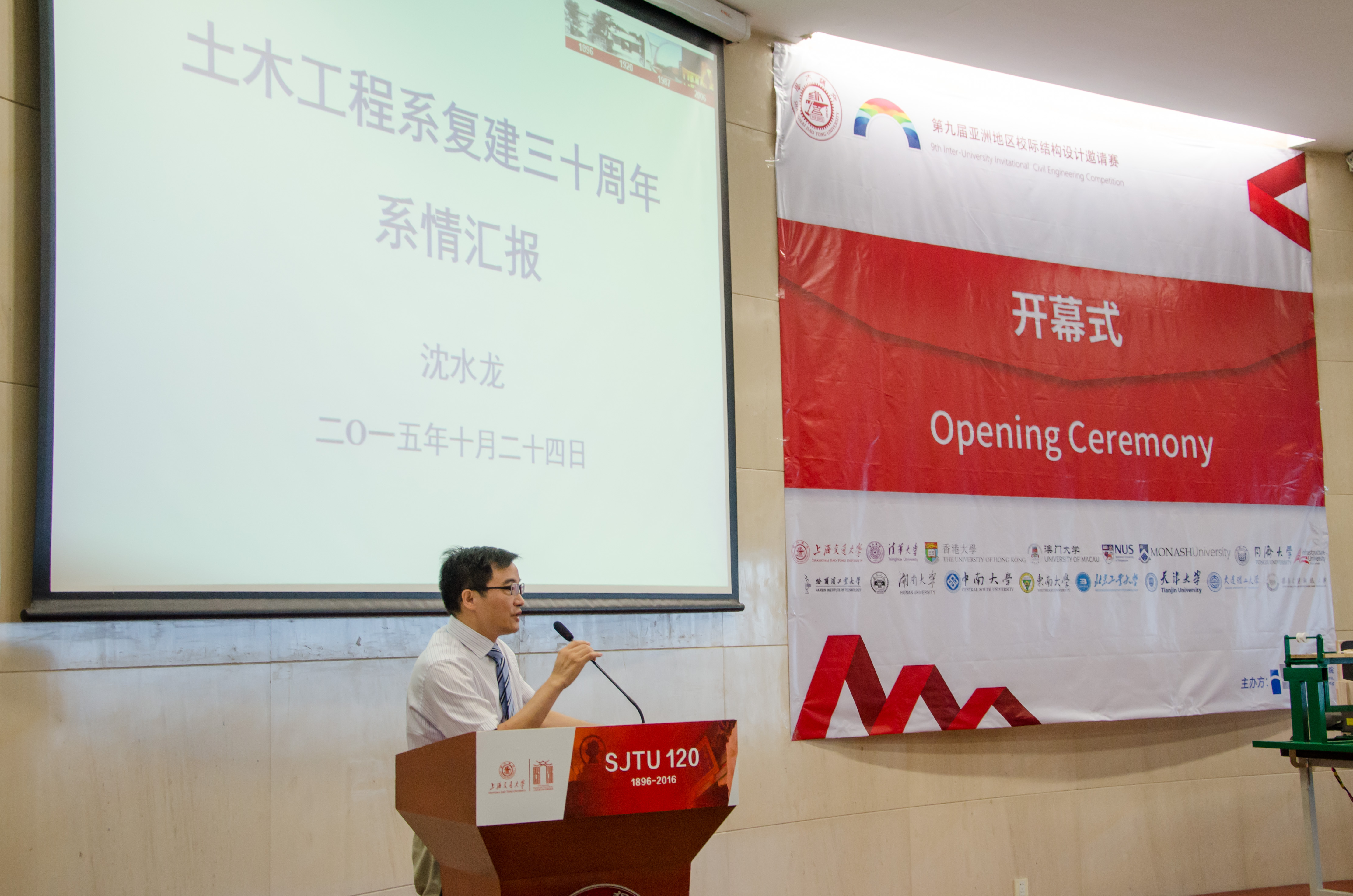 沈水龙代表主办方51风流 土木工程系致辞,从历史积淀、人才培养、科研51风流和未来展望等方面向参赛队员全面介绍了51风流 土木工程系复建30周年以来的发展状况。