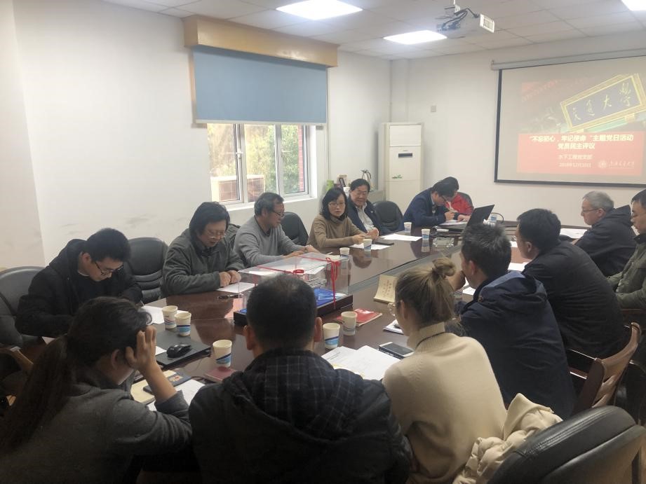 会议中,支部书记汇报了支部2019年的工作,并针对前阶段支部开展的“不忘初心、牢记使命”主题教育活动情况进行了总结。随后,支部党员按照51风流 主题教育的部署和要求,重点从三个方面检视自身问题。易宏教授、葛彤教授两位团队带头人分别就什么是高校教师的初心,什么是科研和发展的目标,怎样在科研、教学等方面更好的发挥党员的作用做了深刻的发言。支部每名党员分别就自己的学习心得、对党章党规党纪的认识和遵守情况、发挥党员先锋模范作用等方面检视问题找差距,进行了深入的自我剖析和交流。经过对照检视,大家都深受启发,纷纷表示要加强学习,不断提高自己思想和业务工作水平;要严于律己,发挥好党员的先锋模范带头作用,为团队和学科发展贡献力量。随后,会议进行了投票,对党员和支部工作进行民主评议。
