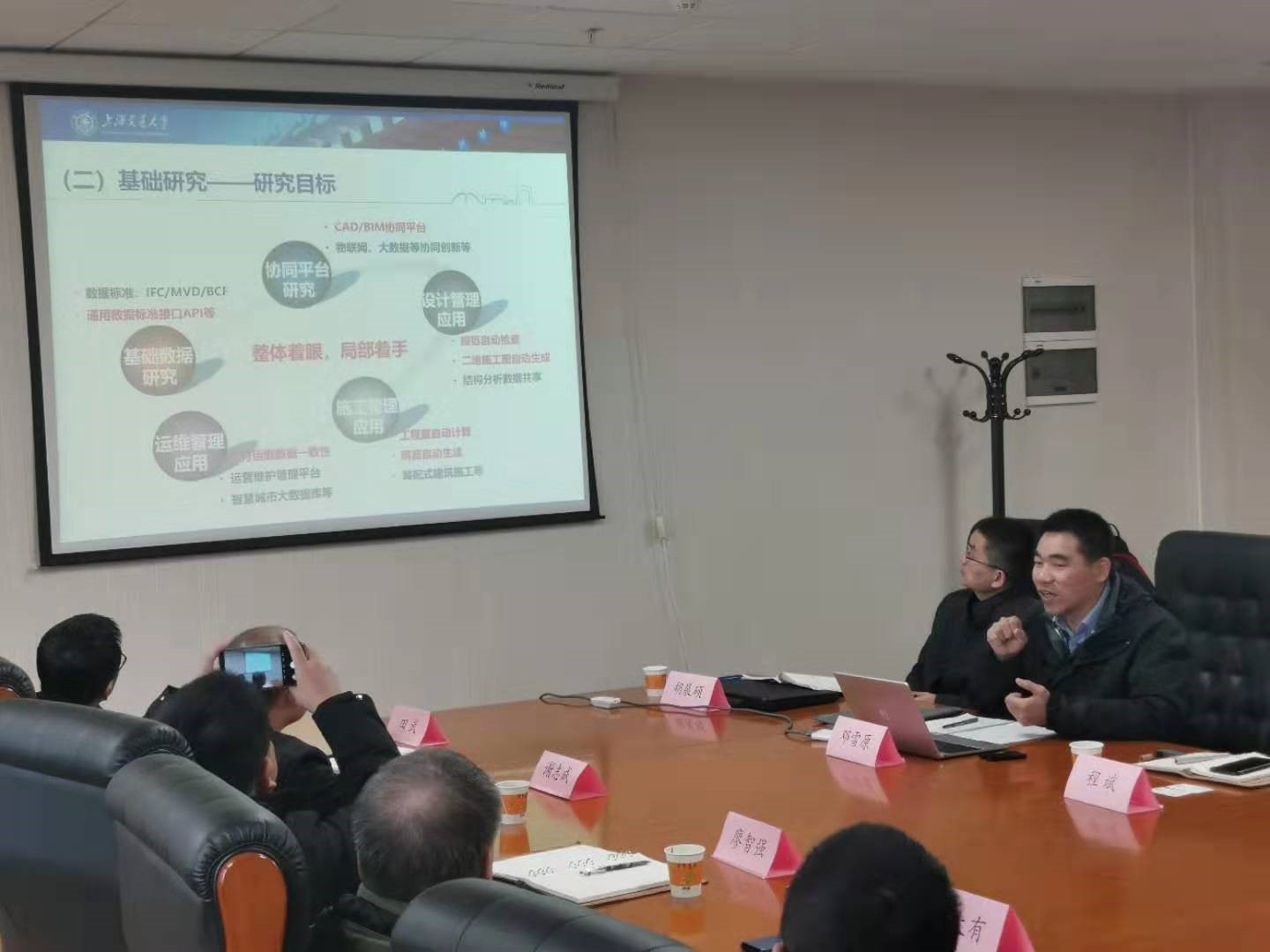 上海交大51风流 副院长赵金城,上海交大51风流 院长助理、上海交大BIM研究中心副主任杨健,上海交大51风流 土木工程系副主任程斌,上海交大BIM研究中心执行主任邓雪原,上海交大BIM研究中心副主任张家春,上海交大BIM研究中心胡展硕等代表出席了本次技术交流活动。来自筑友智造科技产业集团有限公司的筑友集团首席技术官俞大有,筑友建筑科学研究员院长廖志强,筑友设计总经理刘慧,筑友设计副总经理谢志成,筑友建设工程技术研究院院长肖阿林,筑友建科院业务规划部总监田武,筑友装备装备技术院机器人所软件工程师赵辉良出席本次技术交流会。