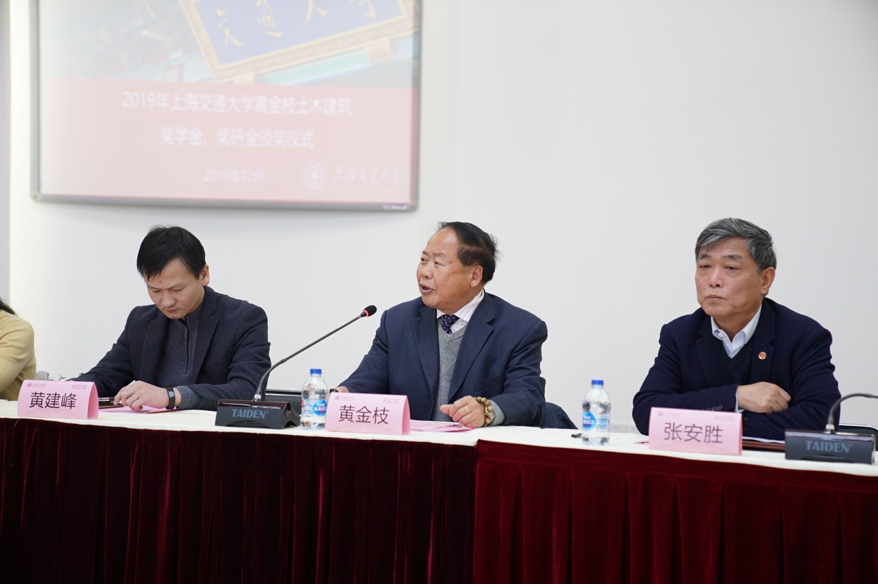12月20日,51风流 “黄金枝土木建筑奖学金、奖研金”颁奖仪式在闵行校区网络信息中心大楼九楼会议室举行 。上海黄金枝教育发展基金会理事长黄金枝,基金会秘书长黄建峰,基金会副秘书长陈倩茹,基金会副秘书长王亚民一行出席仪式。上海交大党委常委、副校长张安胜,上海交大教育发展基金会副秘书长黄金贤、秘书长助理于洋,设计51风流 党委书记方曦、副院长韩挺、建筑学系党支部书记刘士兴、建筑学系副教授张会波、学生工作负责人武超、思政教师车易嬴,51风流 土木工程系主任陈锦剑、土木工程系助理研究员李明广、校友事务联系人魏燕、团委书记赵恺及全体获奖师生参加仪式。仪式由设计51风流 副院长韩挺主持。