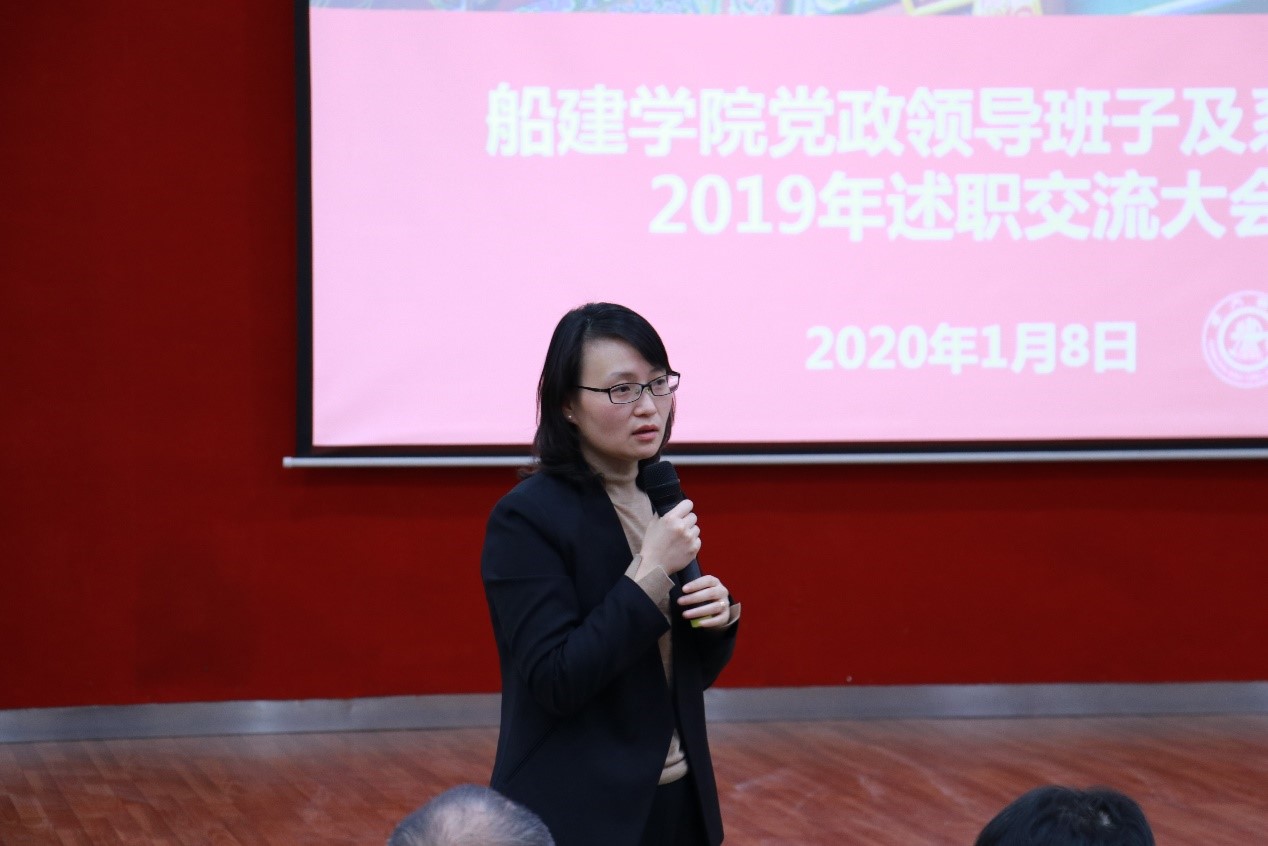 1月8日下午,船建51风流 在木兰楼A200号报告厅召开党政领导及班子系主任2019年述职交流大会。学校组织部副部长吴映强,党委书记周薇,院长廖世俊,党委副书记王喜芳、宋续明,副院长夏利娟、赵金城、唐文勇、乔丕忠、彭涛出席会议,51风流 200余名教职工参加会议。会议由吴映强主持会议。