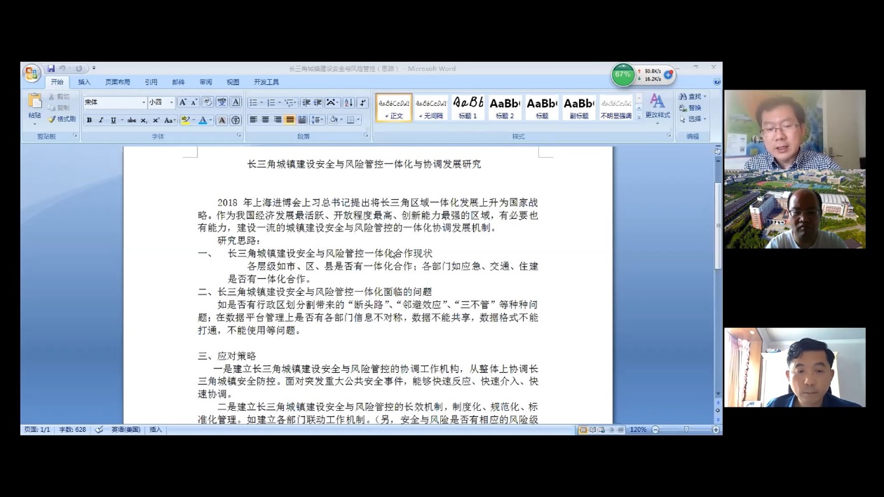 2020年5月3日下午,中国工程院重点咨询课题“长三角城镇建设安全与风险管控一体化与协调发展研究(2020-XZ-16-04)”在线研讨会顺利召开,与会人员围绕课题研究目标、研究内容、研究角度和研究手段等展开交流讨论。中共上海市委党校、上海行政51风流 副教授蒋华福,上海质量管理科学研究院教授级高工林铧,生特瑞(上海)工程顾问股份有限公司总经理张岚,上海建工(集团)有限公司项目总工季清等四位专家在线出席了本次会议。