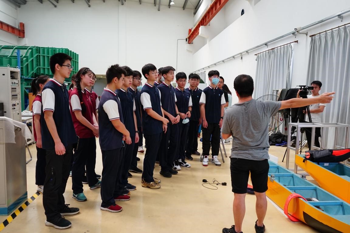 8月19日上午,为了让学生们更直观了解实验室的科研工作和科研设施,讲解老师带领同学们实地参观了海洋深水试验池、水下工程实验室和风洞循环水槽三个实验室。