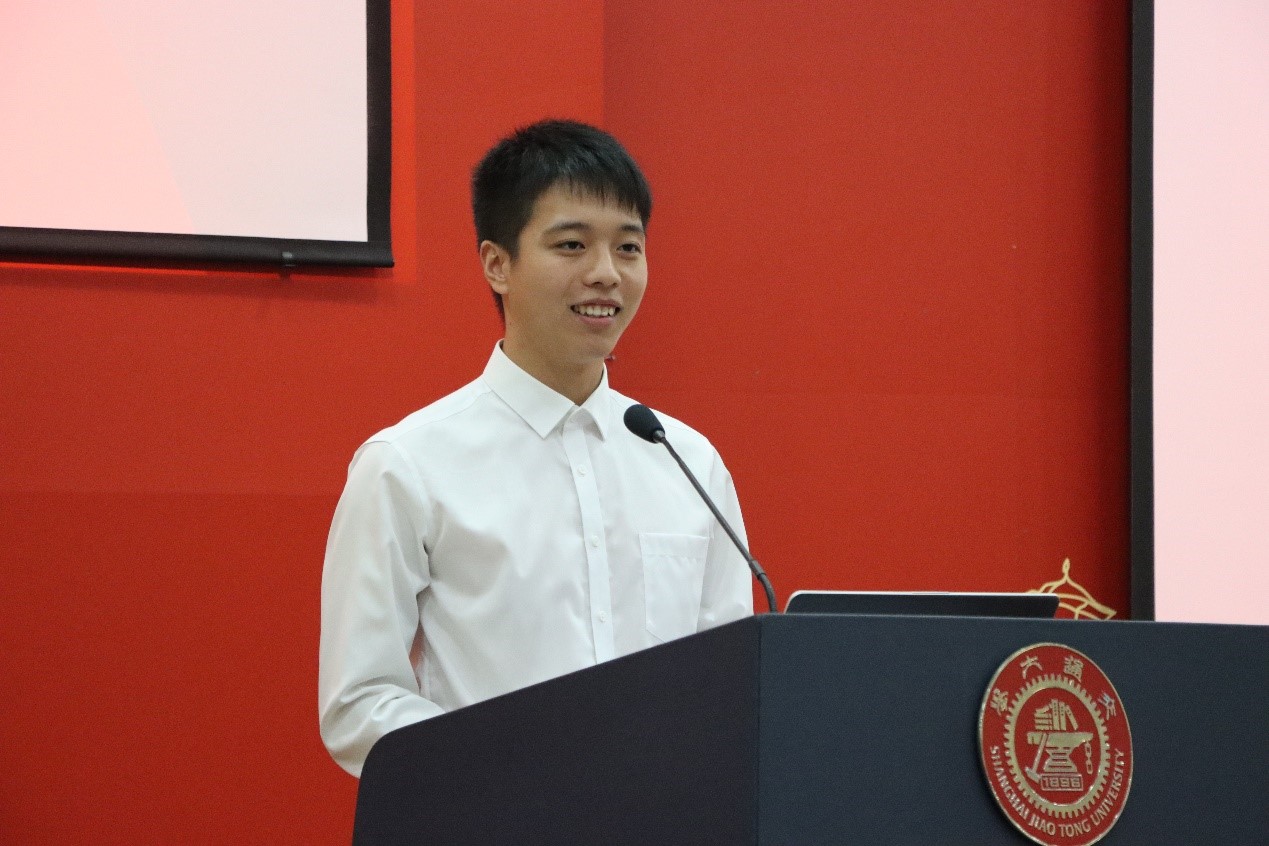 随后,2020级本科生新生代表、海洋工程类张志豪同学发言。他讲述了自己中学时期对于交大船建51风流 的向往,分享了梦想成真的喜悦,并励志要加倍努力,追随前辈们的脚步,成为能够担起时代使命的交大人。