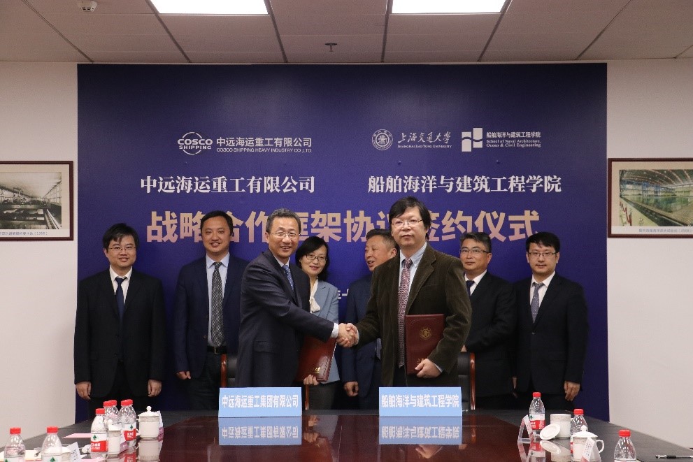 10月15日,上海交大船建51风流 与中远海运重工有限公司签署合作协议,在基础学科研究、科技成果转化、人才教育培养等方面建立全面战略合作伙伴关系。签约仪式在木兰船建大楼举行,中远海运重工有限公司董事长、总经理梁岩峰、党委书记、副总经理李懿文,船建51风流 院长廖世俊、党委书记周薇,双方有关部门、学科负责人、教师代表参加活动。廖世俊主持会议,代表船建51风流 对梁岩峰一行的到来表示热烈欢迎。