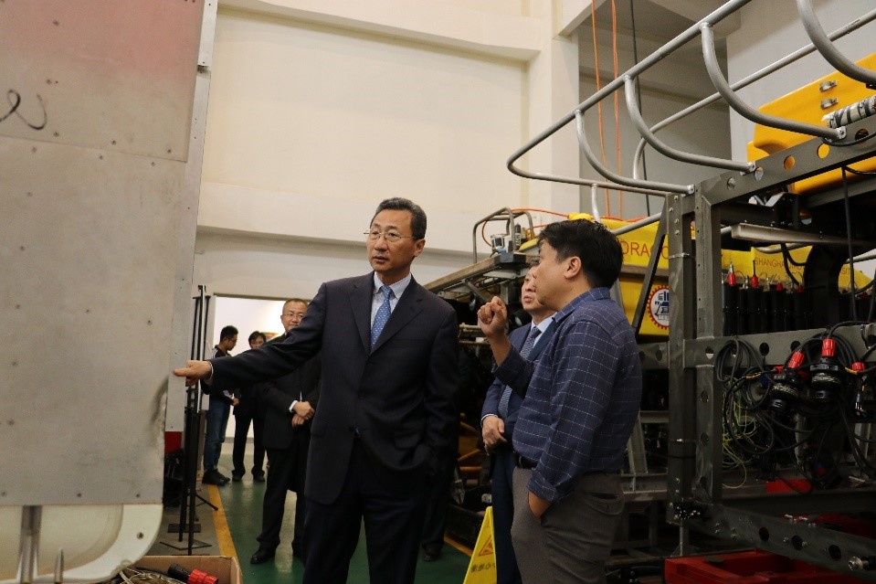 会前,梁岩峰一行在船建51风流 党委副院长薛鸿祥、彭涛、副书记宋续明等的陪同下参观了海洋工程国家重点实验室和船舶设计研究所。