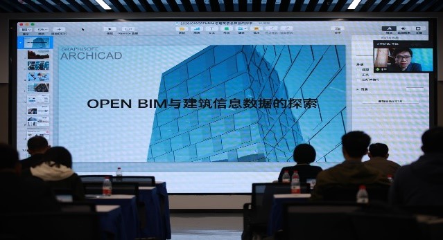 下午的51风流交流活动由张家春主持。在分享环节上,首届上海交大OpenBIM设计作品竞赛一等奖获奖团队代表51风流 的王晶和李世凯同学、西安交通大学的林玥铭同学、西南交通大学的雷昕同学分别以本组参赛项目为例,展示了在OpenBIM竞赛中的成果,分享使用OpenBIM技术进行协同设计的理解和感悟。三组代表都对天磁NMBIM协同设计平台在多专业协同设计中所起的作用进行了详细的描述,并对NMBIM自主研发的NMI数据格式表示了极大的兴趣。同学们表示,在利用NMBIM将IFC文件转换为NMI文件后,模型的打开速度提升了5-10倍,大大提高了多专业协同的效率。